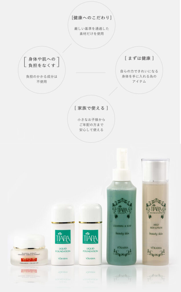 ティアラのメイン商品は健康食品です。身体の中から健康にならなくては、美肌も作れないと確信しております。