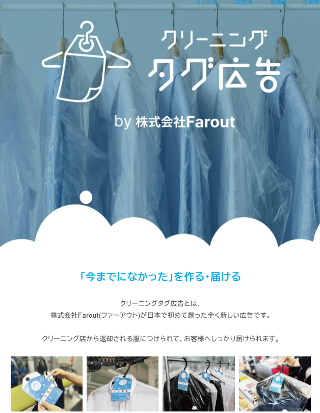 クリーニングタグ広告という生活動線に入っていける日本初の広告を提供しております。